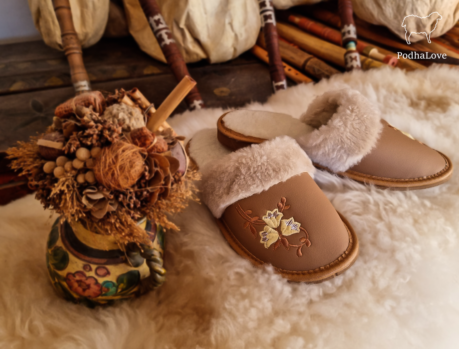 Podhalove Damen-Hausschuhe, Highlander-Leder-Flip-Flops, Ciapy Laczki